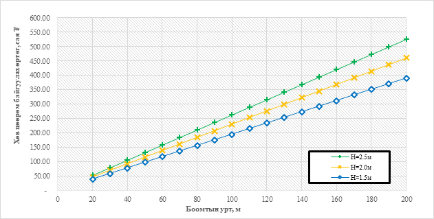 4-р зураг. Шороон боомтын урт, өндөрт хамаарах /овоолгонд/ хөрөнгө оруулалтын характеристик