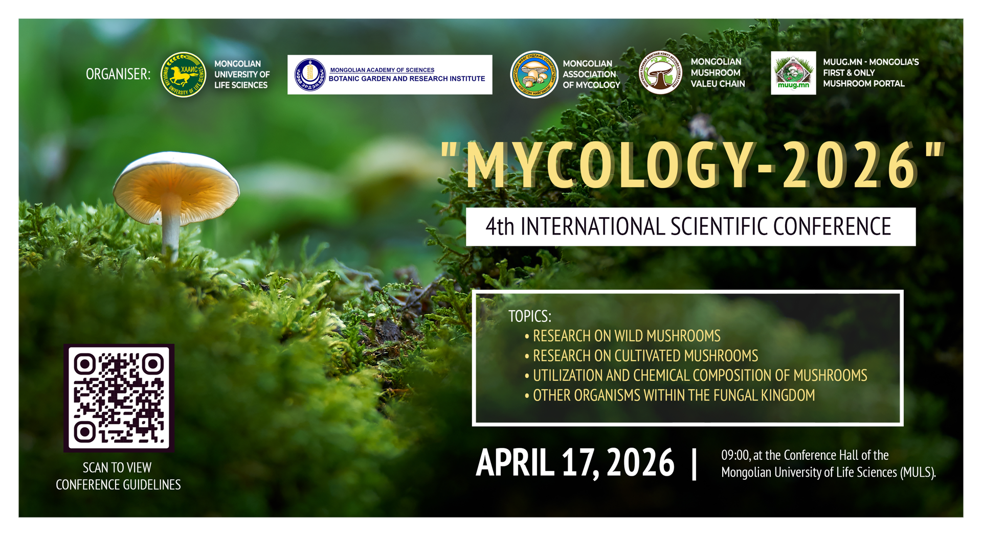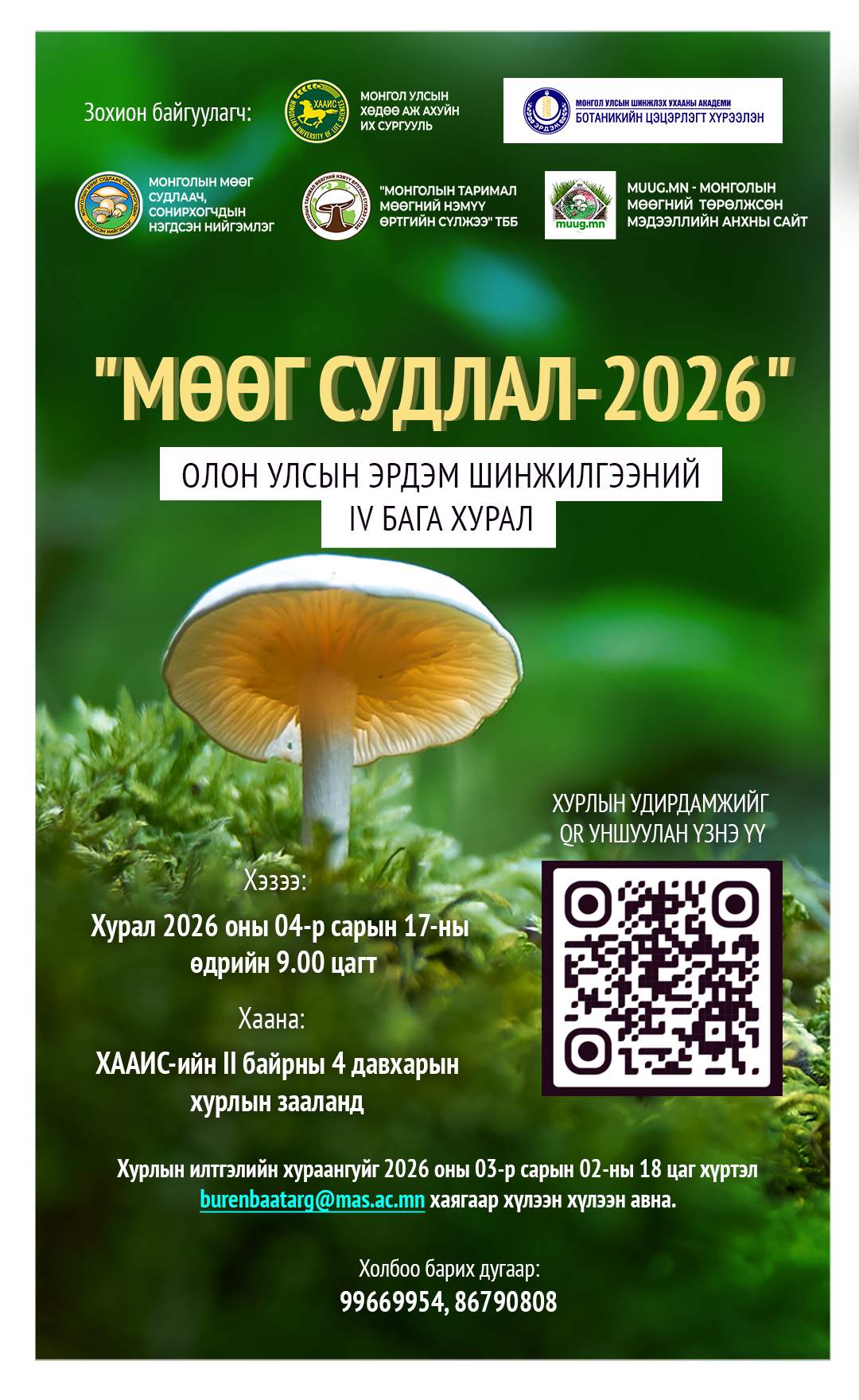 Монгол Улсад мөөг судлалын шинжлэх ухааны хөгжлийг дэмжих, олон улсын эрдэмтэн судлаачдыг нэг дор цуглуулан мэдлэг, туршлага солилцох зорилго бүхий “Мөөг Судлал‑2026” олон улсын эрдэм шинжилгээний IV бага хурал 2026 оны 4‑р сарын 17‑ны өдөр зохион байгуулагдахаар боллоо.