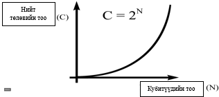 6. Хэрэв 3 кубит байвал төлөвүүдийн тоо 8 болно. 1 кубит нэмэгдэх бүрд энергийн диаграммыг тодорхойлох төлөвүүдийн тоо 2 дахин их болно. Төлөвүүдийн тоо нь кубитүүдийн тоотой экспоненциал хамааралтайгаар өснө.